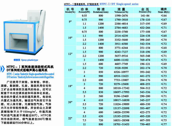 HTFC離心式消防系列風(fēng)機(jī)用于體育館,地下停車場,學(xué)校,酒樓,商場,大型住宅區(qū)等消防能風(fēng)場所,平時(shí)作普通通風(fēng)用,發(fā)生火災(zāi)時(shí)作消防排煙用時(shí)能在280℃高溫條件下連續(xù)運(yùn)行30分鐘以上不損壞 。